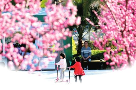 開學(xué)前夕,孩子們在柳綠花明、青草萌芽的市區(qū)濱江濕地公園里擁抱春色,告別寒假。映襯著孩子們活潑的身影,玉蘭、紫葉李、杏花、櫻花盡情綻放,到處一派春意盎然,透著勃勃生機(jī)。記者 冉創(chuàng)昌 攝影報(bào)道