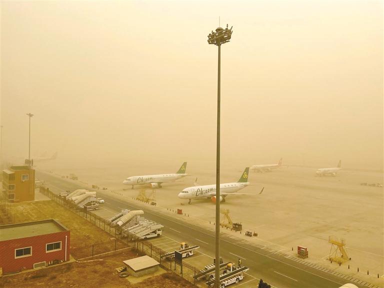 中川機(jī)場(chǎng)黃沙漫天。通訊員金帥群 黃貴彬 攝