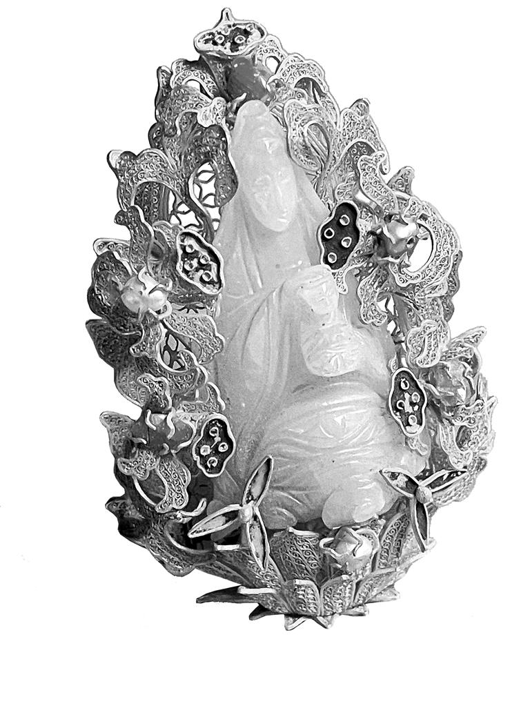 1986年,蘭州市博物館對(duì)白衣寺塔進(jìn)行整體維護(hù),從塔剎天宮處發(fā)現(xiàn)明代珍貴文物46件,其中有《大方廣佛華嚴(yán)經(jīng)》、鎏金釋迦牟尼銅造像、明代印花絲巾等文物,尤其是金蓮玉雕抱子觀音簪和金蓮玉雕魚籃觀音簪,造型精致,做工精美,表現(xiàn)了很高的明代金累絲手工制造技術(shù)水平,簪柄有銘文21字,“崇禎五年捌月初拾日肅王妃熊氏施伴讀姚進(jìn)兼裝”,被定級(jí)為國(guó)家一級(jí)文物。
