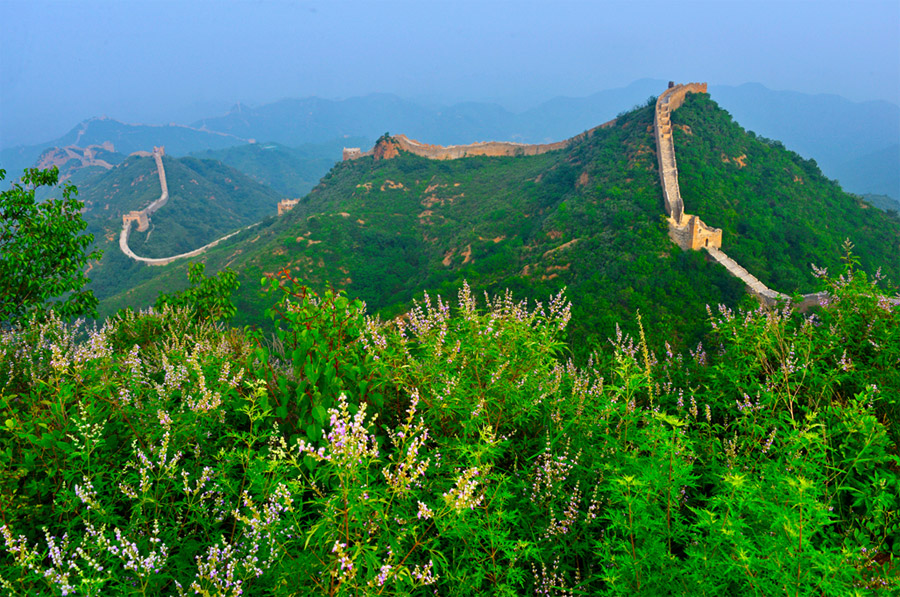 視野開闊。她起伏跌宕于山巒之間,站在高處遠(yuǎn)眺,十多千米長城盡收眼底,似一條巨龍?jiān)谏綉匍g起伏綿延,此景惟金山嶺長城獨(dú)有。