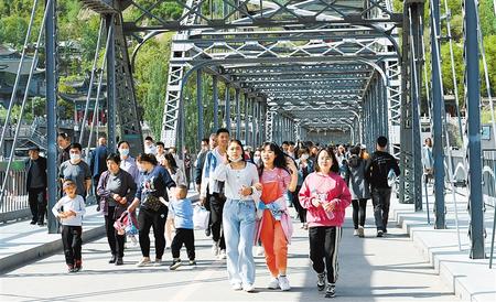 5月5日,蘭州中山橋上游人如織。新甘肅·甘肅日報記者 呂亞龍