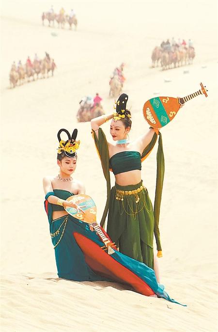 “五一”假期,游客在敦煌鳴沙山月牙泉景區(qū)拍照,該景區(qū)迎來今年旅游高峰。 新甘肅·甘肅日報通訊員 馬曉偉