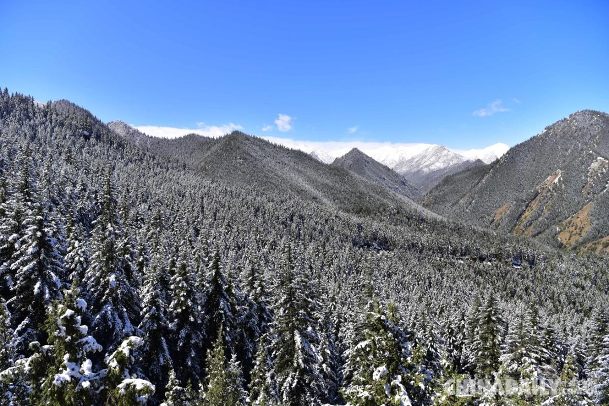 甘肅肅南中華裕固風情走廊景區(qū)迎降雪,銀裝素裹,美輪美奐。