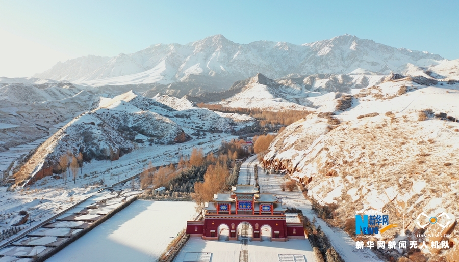 這是11月21日航拍的甘肅省張掖市肅南裕固族自治縣馬蹄寺風景區(qū)雪景。新華網(wǎng)發(fā)(楊永偉 攝)