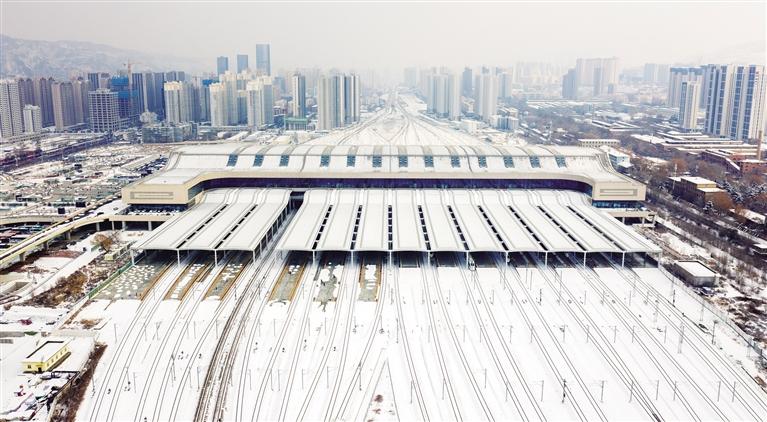 2月6日,在蘭州西站,鐵路線路隱沒在白雪之中。記者 馬軍 攝