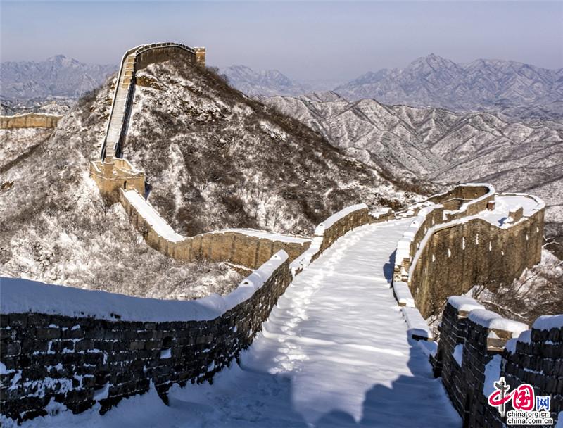 春雪初霽古長城美輪美奐 銀裝素裹金山嶺氣勢磅礴