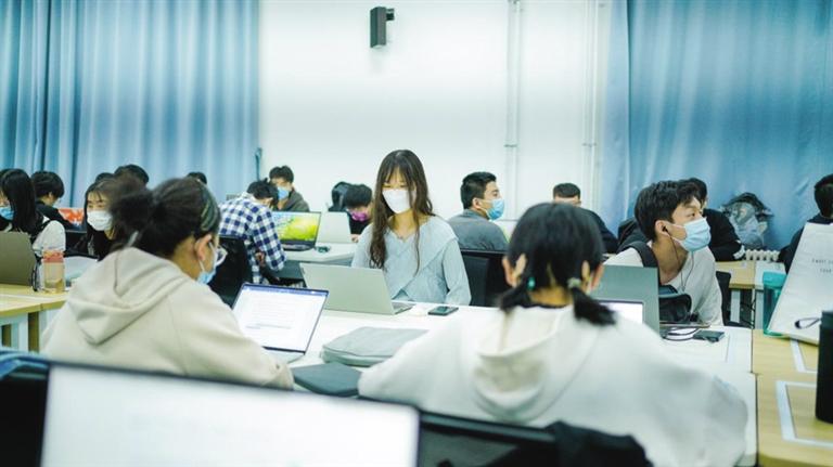 文學(xué)院2021級(jí)的洪逸下午的課程是“大學(xué)寫(xiě)作”,早早就來(lái)到教室的她表示,“在教室上課,老師講授的知識(shí)更加直觀,課堂的互動(dòng)也變得更加生動(dòng)豐富了。”