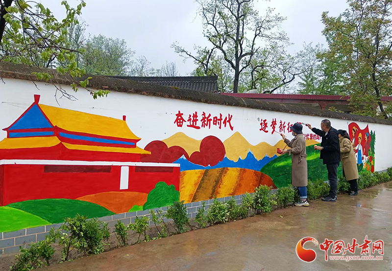 中國甘肅網(wǎng)4月21日訊(本網(wǎng)記者 李紅軍)4月19日,記者走進(jìn)風(fēng)景如畫的成縣陳院鎮(zhèn),發(fā)現(xiàn)一群人揮舞著手中的“畫筆”,在村莊潔白的墻壁上,勾勒線條、填充顏色,一幅構(gòu)思巧妙、色彩絢麗、栩栩如生的墻體彩繪作品讓一面面白墻“活”了起來,村莊環(huán)境更顯生動(dòng)活潑。