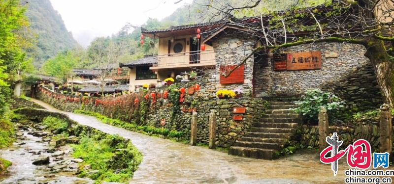 干凈整潔的人居環(huán)境、旖旎的山水風(fēng)光、古樸的特色民居和深厚的文化底蘊(yùn),自從朱家溝村建成美麗鄉(xiāng)村以后,很快就聲名鵲起,吸引著越來(lái)越多的游客來(lái)這里休閑觀光旅游,看到家鄉(xiāng)的鄉(xiāng)村旅游紅紅火火,原先在縣城做生意的朱彥杰夫婦回到朱家溝,流轉(zhuǎn)了5戶村民的舊房進(jìn)行改造,創(chuàng)辦了“五福臨門”民宿,不僅在家門口就實(shí)現(xiàn)了創(chuàng)業(yè),還延伸了一系列產(chǎn)業(yè)鏈,帶動(dòng)村民實(shí)現(xiàn)了當(dāng)?shù)鼐蜆I(yè)。