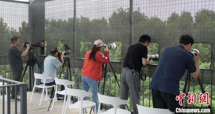 圖為鳥類攝影愛(ài)好者在觀鳥平臺(tái)上進(jìn)行拍攝。 桑秋華 攝