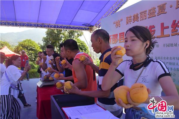 活動(dòng)中,還開(kāi)展了 “最大桃王”“最甜桃后”評(píng)比和吃黃桃比賽,將現(xiàn)場(chǎng)氣氛推向了高潮?;顒?dòng)最后,還開(kāi)啟了2022年新邵縣“新邵資味”農(nóng)特產(chǎn)品短視頻暨直播大賽。