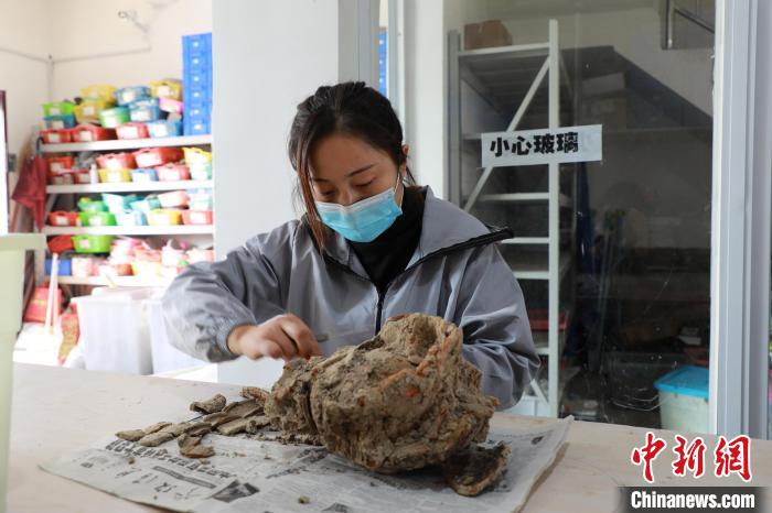 圖為工作人員在查看自己修復的文物。代盼盼 攝