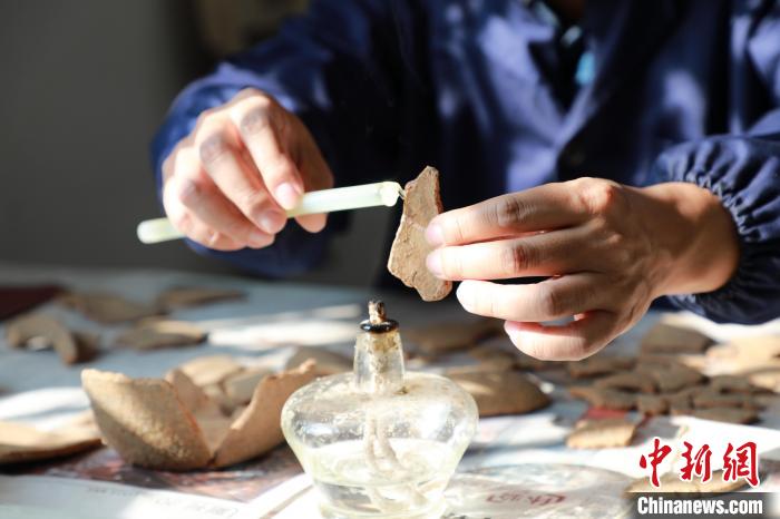 “剛進入修復組的時候,面對數(shù)不清的碎陶片和一堆泥土,我根本就不知道從哪里下手。”王金香清晰地記得,第一次使用熱熔膠,手就被燙出了一個水泡。后來,在老師們的耐心指導下,自己才逐漸掌握了一些方法要領。