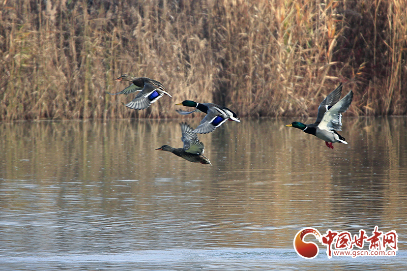 冬日的平?jīng)鍪谐缧趴h,無人機(jī)鏡頭下的唐帽山山巒疊嶂、俊秀奇威,高大的樹木直插云霄,在云霧繚繞中宛若仙境;汭水河畔,成群的綠頭鴨時(shí)而佇立枝頭,時(shí)而輕舞飛翔,時(shí)而戲水覓食。