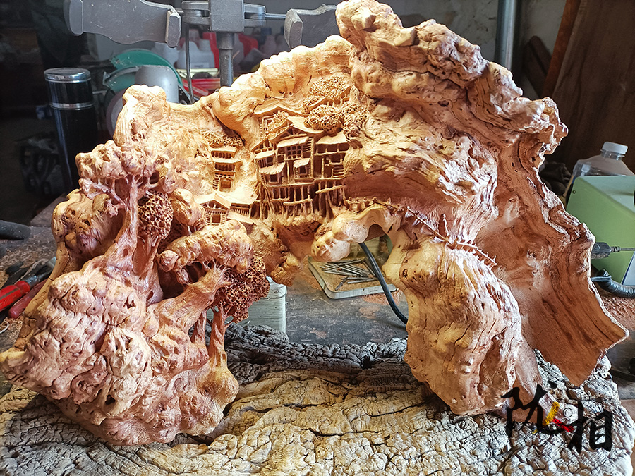 “根雕之美,七分天成,三分雕琢。雕刻過程中不宜破壞太大,要做到工蘊于材,盡量貼近自然,但即便雕功只占三分,可也不是容易的事”。