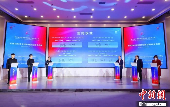 會上,嘉賓們共同見證了共建中國紡聯(lián)非遺辦長三角地區(qū)工作站合作簽約、紡織非遺出版?zhèn)髅胶献骱灱s、紡織非遺標(biāo)準(zhǔn)化合作簽約、紡織非遺京津冀協(xié)同發(fā)展戰(zhàn)略合作簽約、昆曲《御題棉花園》項目啟動簽約、我家的毛巾會唱曲兒授權(quán)合作簽約、共建河北大學(xué)高陽文化研究中心合作簽約等多項合作的達(dá)成。舉辦了中國紡織非遺推廣大使“推進城鄉(xiāng)融合發(fā)展、全面實現(xiàn)鄉(xiāng)村振興”倡議行動。