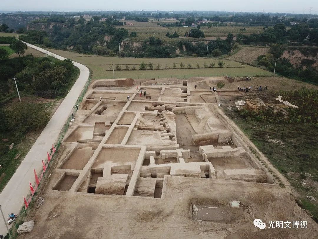 甘肅慶陽西峰西郊的南佐遺址,坐落在黃土高原第一大塬——董志塬上,傳說中這里是黃帝部族的重要活動(dòng)地域,也是以農(nóng)業(yè)著稱的周人祖先不窋?shù)睦霞?。南佐遺址發(fā)現(xiàn)于1958年,1984—1986年和1994—1996年有過兩個(gè)階段的發(fā)掘,從2021年開始第三階段的發(fā)掘和調(diào)查、勘探工作,基本確認(rèn)這是一處以仰韶文化晚期大型聚落為主體的遺址,遺址面積在600萬平方米以上,可能有外環(huán)壕。聚落中部是由9座方形夯土臺(tái)及其環(huán)壕圍成的面積約30萬平方米的核心區(qū),核心區(qū)中部偏北是數(shù)千平方米的由“護(hù)城河”和夯土宮墻圍成的“宮城”。“宮城”中心為主殿,“九臺(tái)”之外還有多處居住區(qū)、夯土臺(tái)、溝渠水利設(shè)施等遺存,出土了大量白陶、黑陶等珍貴遺物和大量水稻,從多個(gè)方面顯現(xiàn)出早期國家和文明社會(huì)的氣象。