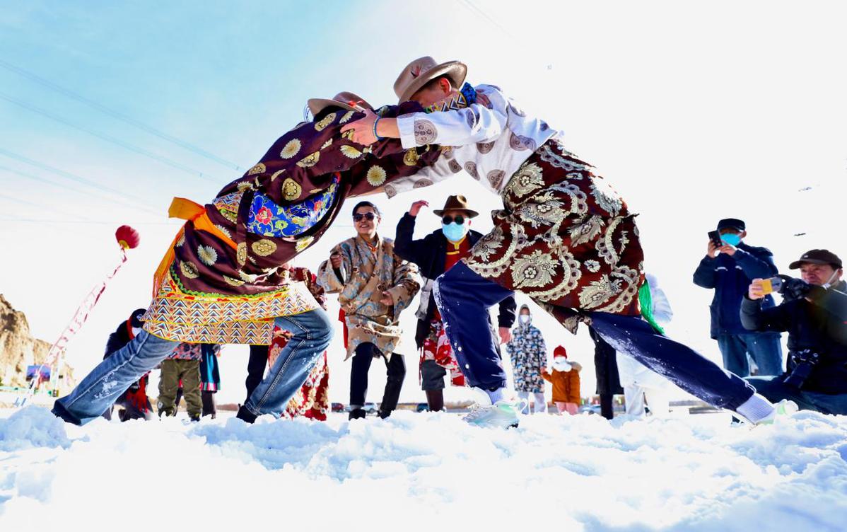 當(dāng)日,“相約文殊山樂享冰雪趣”,藏族群眾在冰雪運(yùn)動(dòng)場上進(jìn)行雪地鍋莊舞、頂杠子、拔棍、拉爬牛、戶外徒步、雪地摔跤、雪圈滑行追逐、滑冰、電商直播等多項(xiàng)比賽,吸引了周邊群眾和甘肅酒泉、嘉峪關(guān)等地的萬名游客前來參觀游覽和參與比賽。
