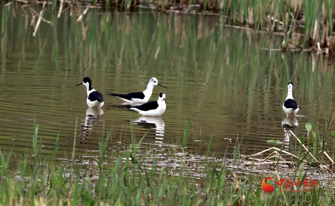 據(jù)了解,這種鳥叫黑翅長(zhǎng)腳鷸,是候鳥的一種,春季于4月初至5月初遷來(lái)中國(guó)北方繁殖地,秋季于9-10月離開北方繁殖地往南遷徙。黑翅長(zhǎng)腳鷸是一種涉禽(水鳥中的一類),喜歡成群結(jié)隊(duì),淺水而居,以小昆蟲、小魚、蝌蚪等為食。它還是一種惹人喜愛的水鳥,它的嘴細(xì)長(zhǎng)而筆直,體白翅黑,對(duì)比分明,身姿綽約、體態(tài)修長(zhǎng),被譽(yù)為“鳥中模特”或者“長(zhǎng)腿超模”。