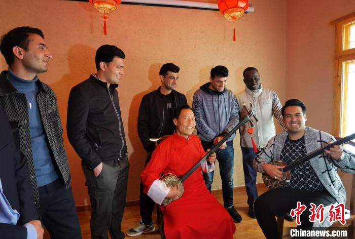 圖為5月9日,外籍游客體驗(yàn)三弦伴奏的“涼州賢孝”。 戴文昌 攝