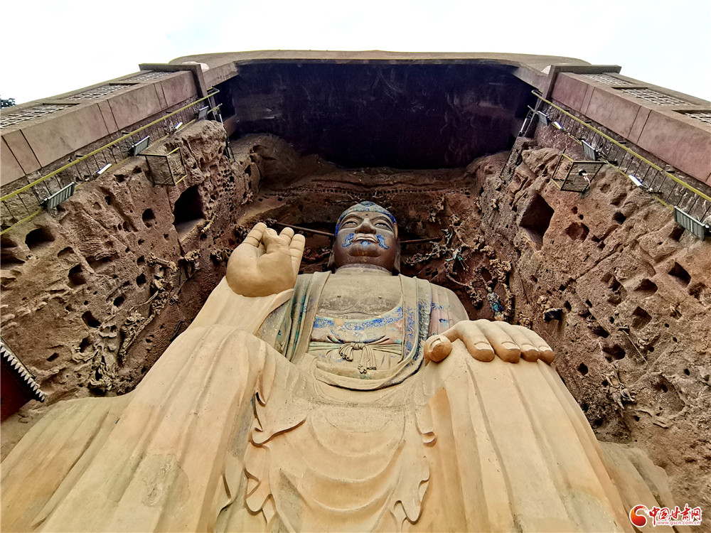 近日,由甘肅省攝影家協(xié)會(huì)會(huì)員李春拍攝、甘谷縣大像山公園管理所監(jiān)制的【大像山全景圖】(長(zhǎng)1.9米)亮相。據(jù)悉,該圖采用全景式拍攝手法,以大像山為中心,左右映帶絲路明珠天門(mén)山、天馬山,展現(xiàn)了春天里大像山的旖旎風(fēng)光,展示了大像山山形酷似一個(gè)長(zhǎng)長(zhǎng)的“山”字,猶如一座筆架,大佛端坐于山的正中,雙眼凝視渭川,山是一尊佛,佛是一座山的絢麗風(fēng)采。