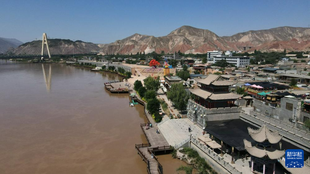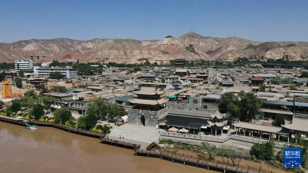 這是位于甘肅省蘭州市西固區(qū)黃河北岸的河口古鎮(zhèn)。河口古鎮(zhèn)歷史悠久、文化底蘊深厚,現(xiàn)留存商賈碼頭、戰(zhàn)略要塞、交通樞紐等遺跡(7月9日攝,無人機照片)。新華社記者 張可任 攝