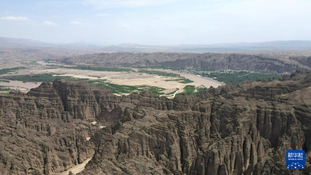這是位于甘肅省白銀市景泰縣中泉鎮(zhèn)龍灣村的黃河石林景觀。黃河石林千峰競奇、峽谷蜿蜒,與黃河遙相呼應(yīng),形成山環(huán)水轉(zhuǎn)、動靜結(jié)合的自然奇觀(7月11日攝,無人機照片)。新華社記者 方欣 攝