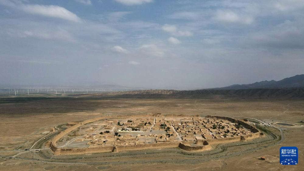 這是位于甘肅省白銀市景泰縣寺灘鄉(xiāng)的永泰古城。永泰古城始建于明萬歷年間,為當(dāng)時的軍事要塞,因形似金龜,又名“永泰龜城”。古城城圍周長1.7公里,高12米,2006年被命名為全國重點文物保護單位(7月11日攝,無人機照片)。新華社記者 方欣 攝