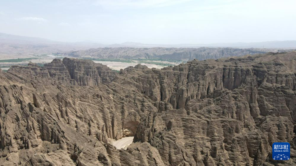 這是位于甘肅省白銀市景泰縣中泉鎮(zhèn)龍灣村的黃河石林景觀。黃河石林千峰競奇、峽谷蜿蜒,與黃河遙相呼應(yīng),形成山環(huán)水轉(zhuǎn)、動靜結(jié)合的自然奇觀(7月11日攝,無人機照片)。新華社記者 張可任 攝