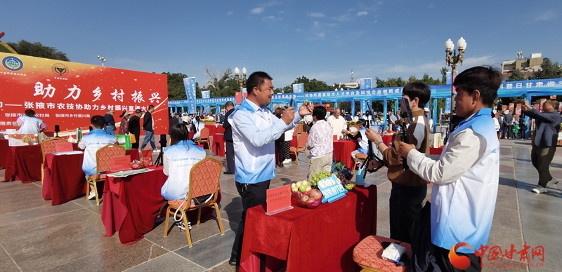 品味張掖好物,助力鄉(xiāng)村振興。在全國科普日甘肅主場活動之一的張掖市農(nóng)技協(xié)助力鄉(xiāng)村振興直播大賽現(xiàn)場,臨澤縣奮進葡萄種植農(nóng)民專業(yè)合作社負責(zé)人賈宏福運用手中的“新農(nóng)具”,通過網(wǎng)絡(luò)直播的形式,向網(wǎng)友們推介自產(chǎn)的葡萄,并向大家分享科技助農(nóng)為他帶來的喜悅。