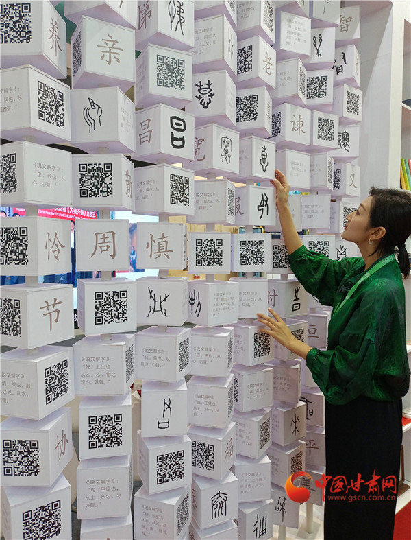 中國甘肅網9月22日訊(西北角·中國甘肅網記者 宋芳科 馮睿棟)中國文字,東方表達。漢字是我們的文化符號,從甲骨文到金文到篆書、楷書,一步步走來見證著中華的文明文脈。山東作為孔孟之鄉(xiāng),禮儀之邦,出版業(yè)亦重視傳統(tǒng)文化傳承。此次山東展團來敦煌參加第十三屆中國數字出版博覽會,帶來了《中國人 中國字》系列書籍和相關的文創(chuàng)衍生產品,盡顯中華文字之美,寓意之妙。