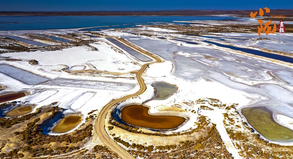陽光照射下,鹽沼像是一片白色的海洋,湖面波光粼粼。成千上萬只赤麻鴨,在這里停歇覓食,它們或在水中嬉戲打鬧,或在空中振翅飛翔,繪成了一幅秋日美景。