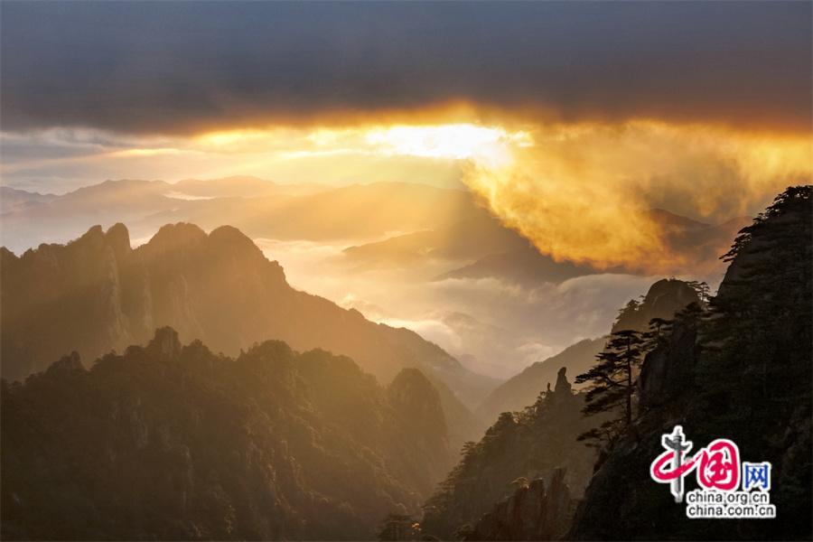 原標(biāo)題:只有一個黃山:日出霞光盡染 云霧輕舒漫卷