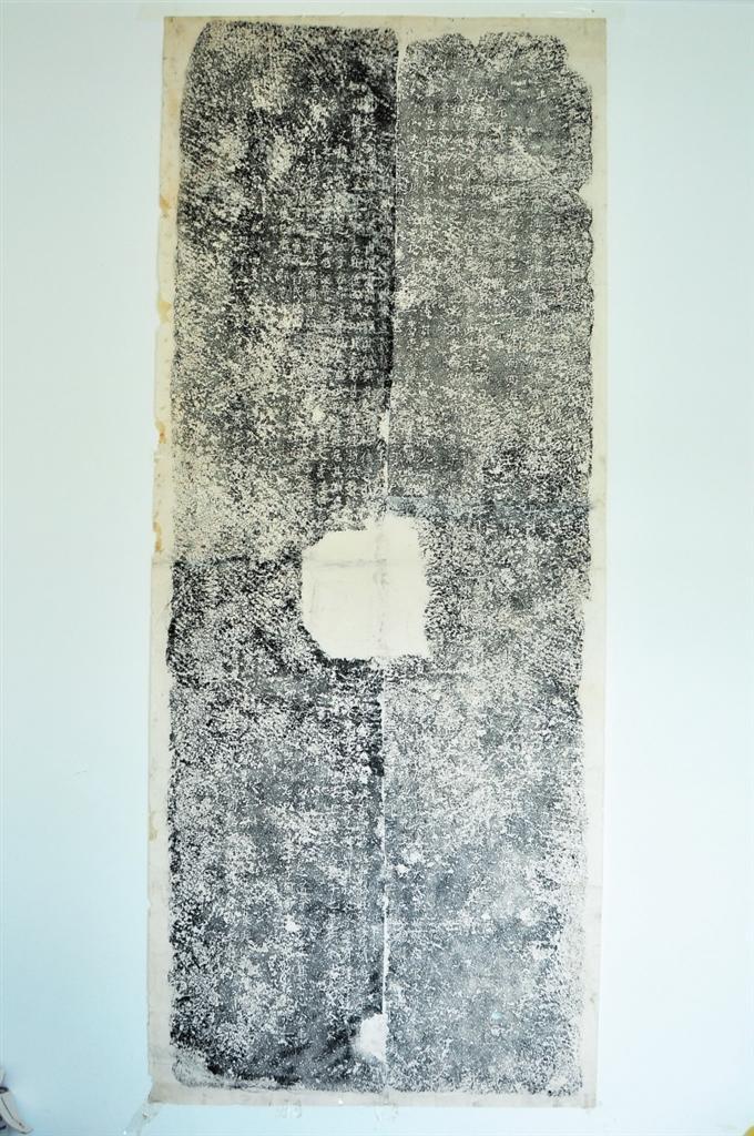 該碑被一分為二豎直解開,鑲嵌于酒泉市舊城東門洞內(nèi)壁西側(cè),用做石柱。原碑無碑額,呈長方體石柱狀。碑身高236厘米,兩塊并寬91厘米,厚29厘米。碑陽漢文24行,左石13行,右石11行,每行字數(shù)不等;碑陰回鶻文32行。石碑中間被鑿毀,陽面的漢文有十多處受到損毀。陰面因長期外露,磨損非常嚴重,回鶻文字跡已很難辨析。碑陽因長期嵌于墻內(nèi),漢字磨損較少,基本不影響對碑文內(nèi)容的理解。
