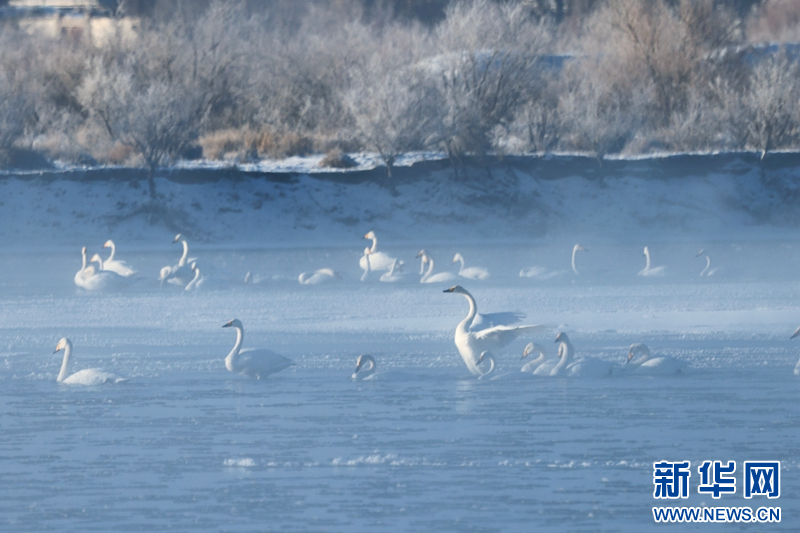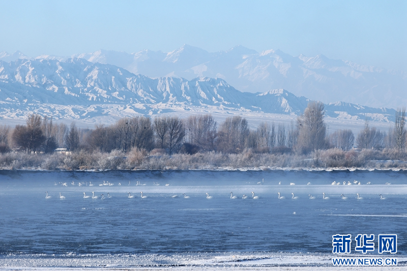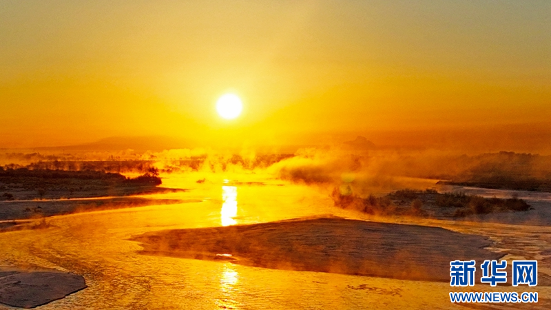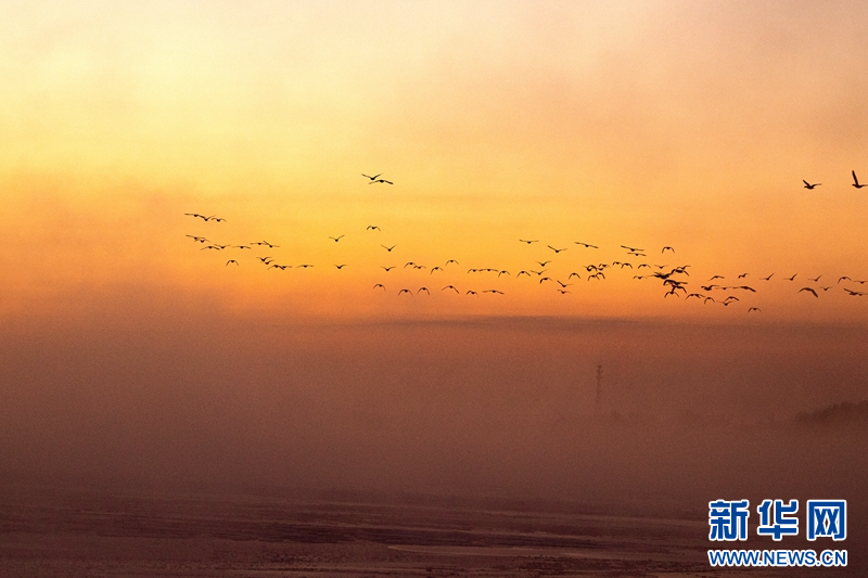 1月21日,冬日清晨,甘肅張掖黑河濕地日出如畫(huà)。一輪冉冉升起的紅日絢麗奪目,與河流、樹(shù)木、候鳥(niǎo)、晨霧共同構(gòu)成了一幅生態(tài)畫(huà)卷。新華網(wǎng)發(fā)(成林 攝)