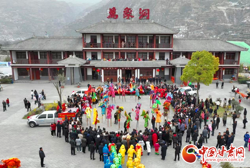 2024年2月21日,在甘肅省隴南市國家AAAA級景區(qū)——武都區(qū)萬象洞風(fēng)景名勝區(qū),當(dāng)?shù)厝罕娊M織的社火表演隊(duì)正在演出。