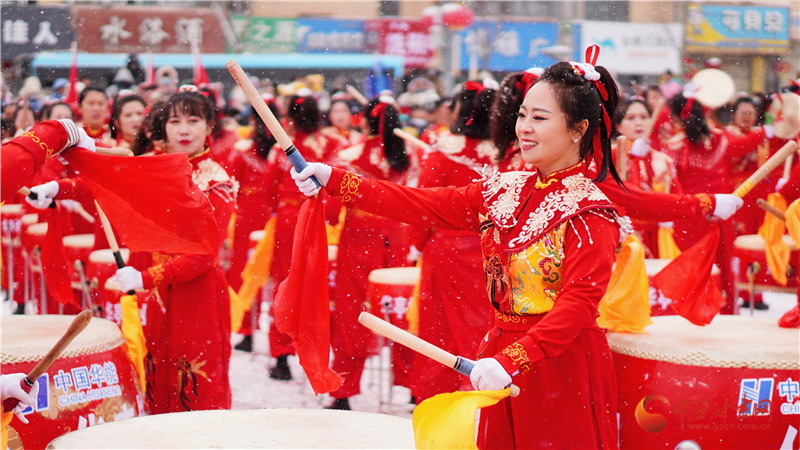 演員們身著喜慶艷麗服裝,頭戴五彩頭飾,手舞彩扇,腰系彩帶,精神抖擻,敲鑼打鼓,盡情表演,贏得陣陣掌聲,現(xiàn)場觀眾紛紛拿手機(jī)、相機(jī),記錄這一刻的熱鬧與喜慶。