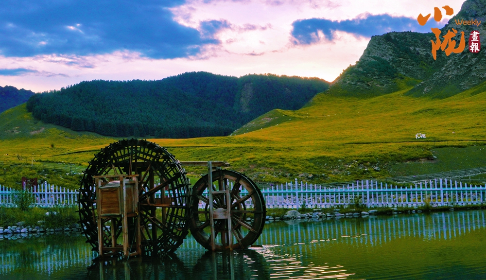 泛著金色光芒的山體,蒼翠如茵的草原,還有那點(diǎn)綴其上的牛羊、浮光躍金的水景觀池,色彩恰到好處的交織在一起,共同撐起了冰溝河的的唯美天境。