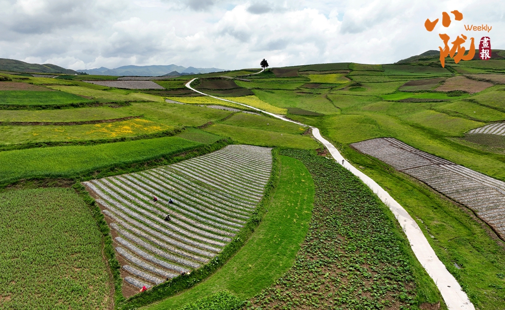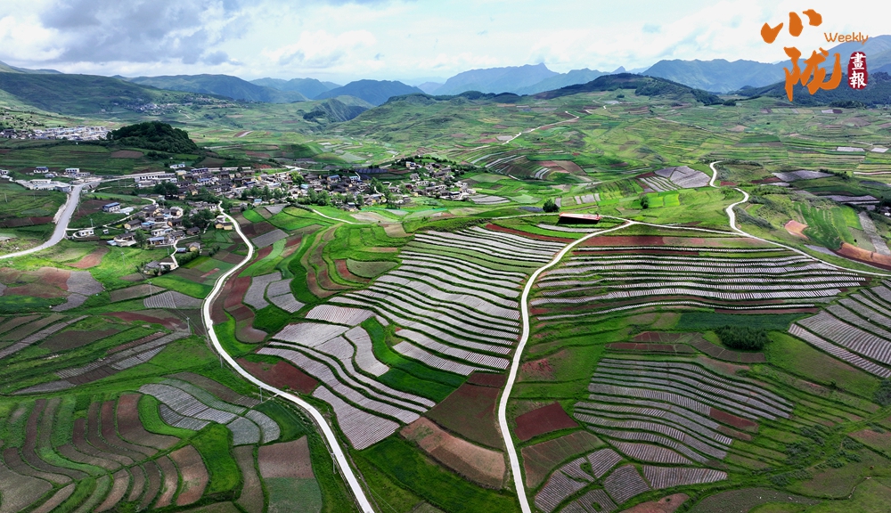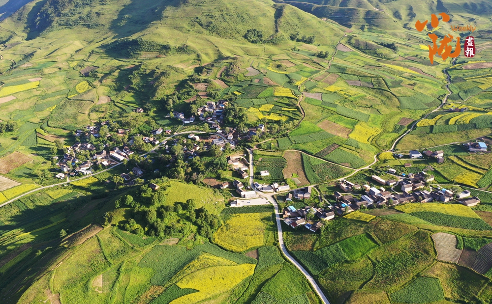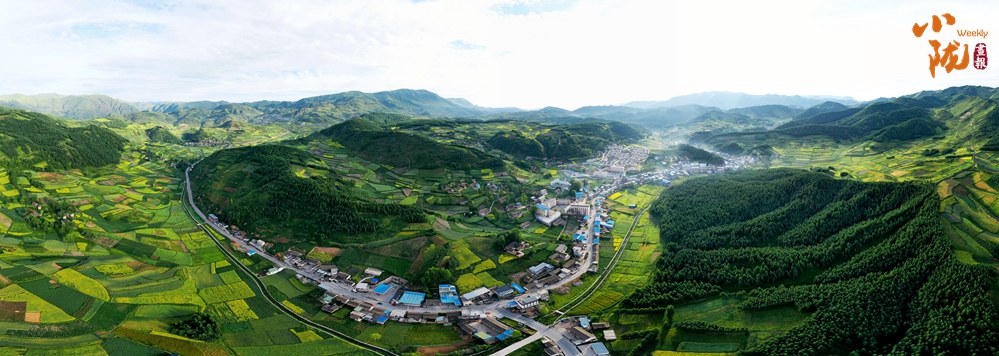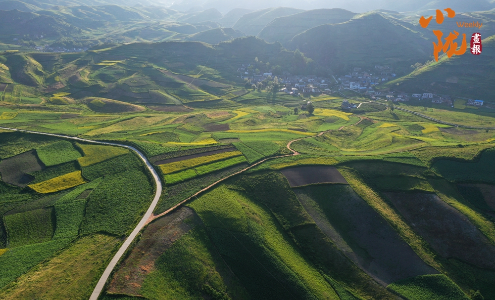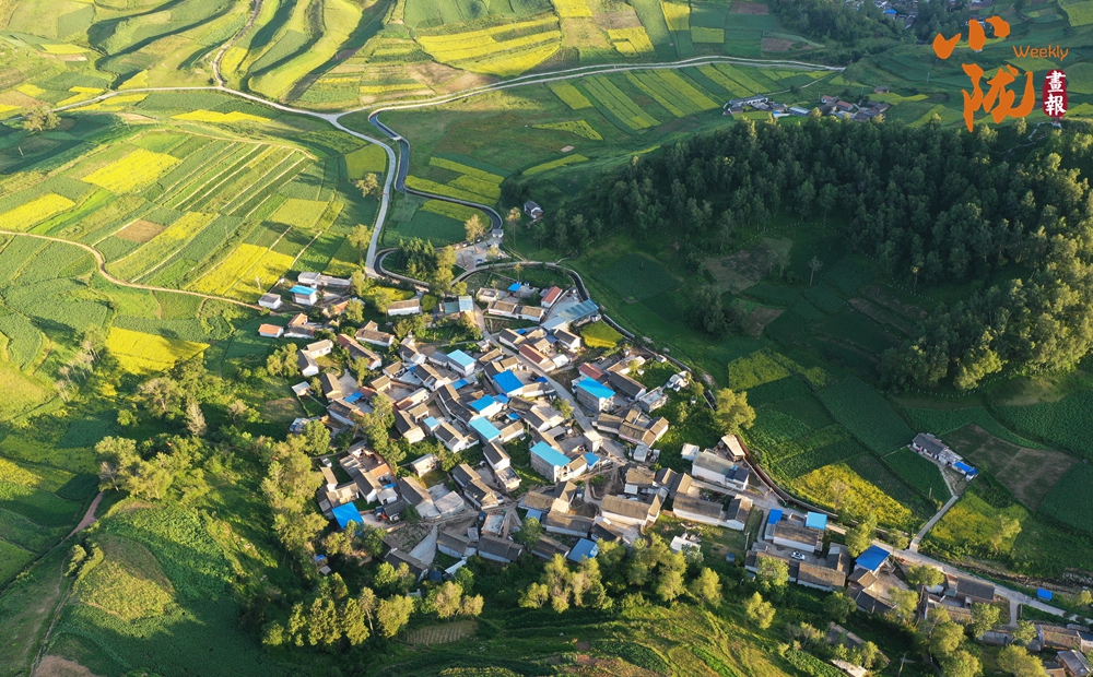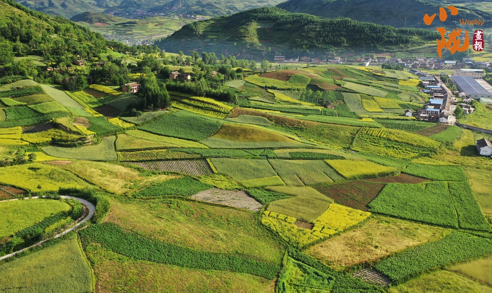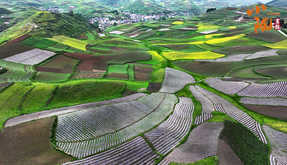 從空中俯瞰,阡陌縱橫與遠(yuǎn)處連綿起伏的青山,錯(cuò)落有致的民居交相呼應(yīng),勾勒出一幅美麗的“田園畫卷”。