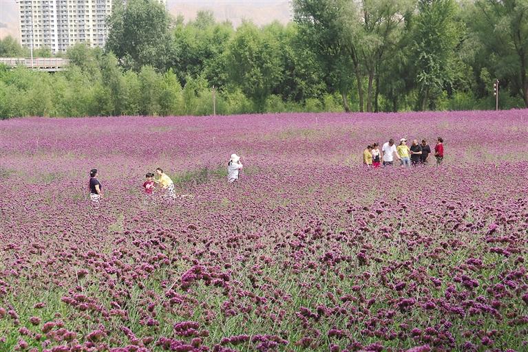 如果說涼爽是秋的前奏,那么絢麗便是它的主旋律。初秋的永靖黃河花堤,大面積馬鞭草競相盛開,絢爛如詩,吸引眾多居民和游客前來賞花打卡。遠看,大片的馬鞭草盛放成一片紫色的花海,秋千、風(fēng)車、長椅點綴其間,行走其中,仿佛置身普羅旺斯的薰衣草田。沿著花海間的步道緩步前行,一陣微風(fēng)裹挾著清甜的香氣迎面撲來,讓人頓感清涼舒暢、心曠神怡。