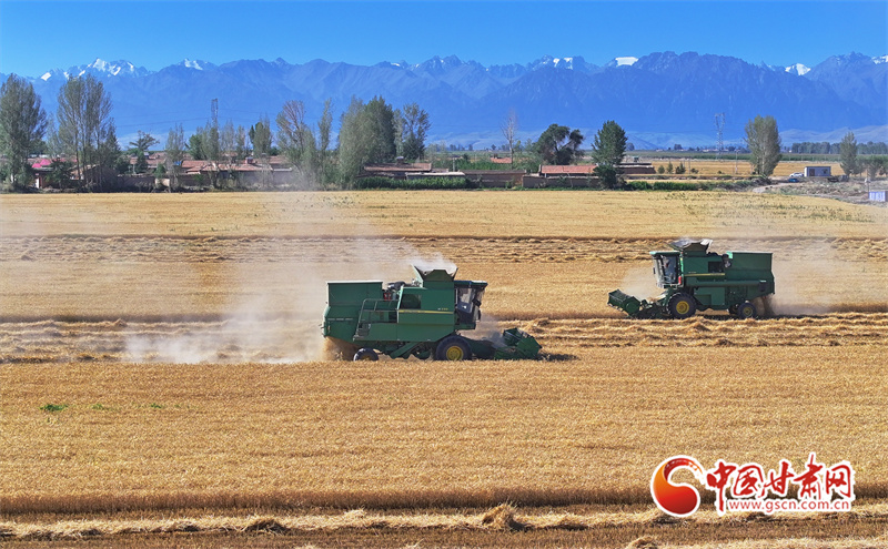 眼下,位于祁連山下的民樂縣南古鎮(zhèn)毛城村800畝連片小麥種植基地上,機(jī)聲隆隆,農(nóng)機(jī)手們駕駛收割機(jī)穿梭往返麥田之中搶收小麥,一派忙碌的豐收景象。近期,隨著民樂縣沿祁連山冷涼山區(qū)小麥迎來成熟季,民樂縣種植的26萬畝小麥進(jìn)入了繁忙的收割期。