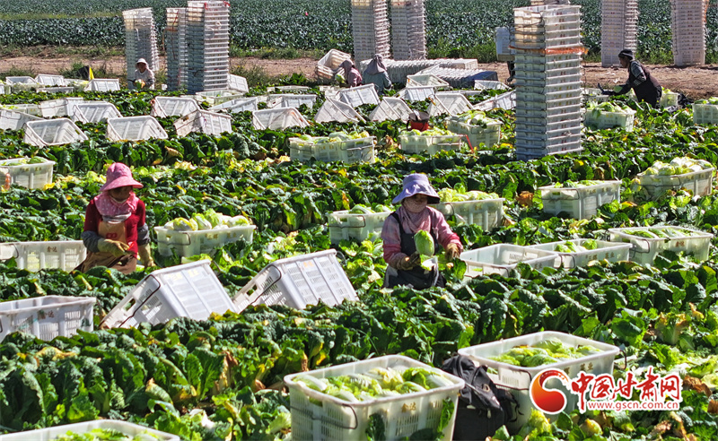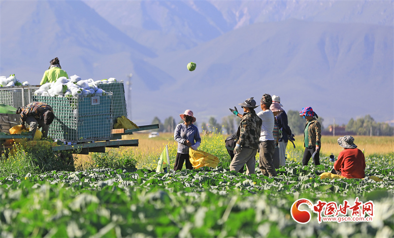 初秋,在民樂縣永固鎮(zhèn)八卦村高原夏菜種植基地,5000多畝娃娃菜、西蘭花、甘藍等高原夏菜已到收獲季,村民們正在忙著采摘、裝運高原夏菜。
