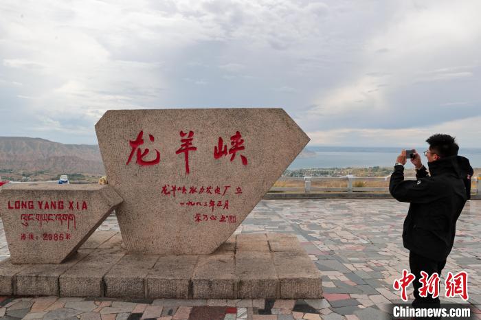 。圖為游客在龍羊峽景區(qū)內(nèi)拍照留念。中新社記者 薛蒂 攝