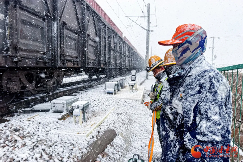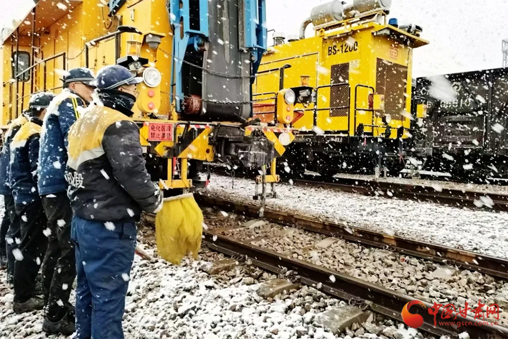 近日,受冷空氣影響,甘肅省古浪、山丹、永昌等地迎來降雪天氣。蘭州鐵路局各單位迅速啟動應急預案,上下聯(lián)動、多措并舉迎戰(zhàn)風雪,保障降雪天氣下運輸安全暢通。(蘭州鐵路局供圖)