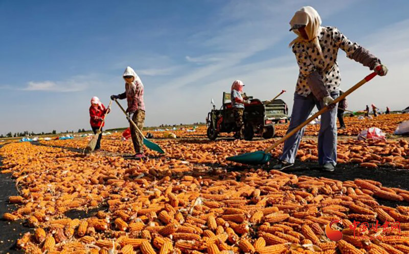 民樂(lè):玉米晾曬忙 繪就好“豐”光