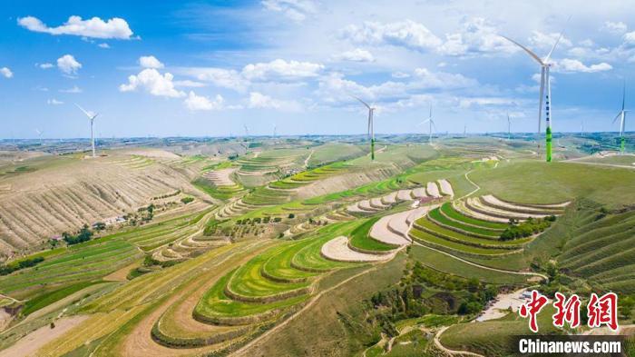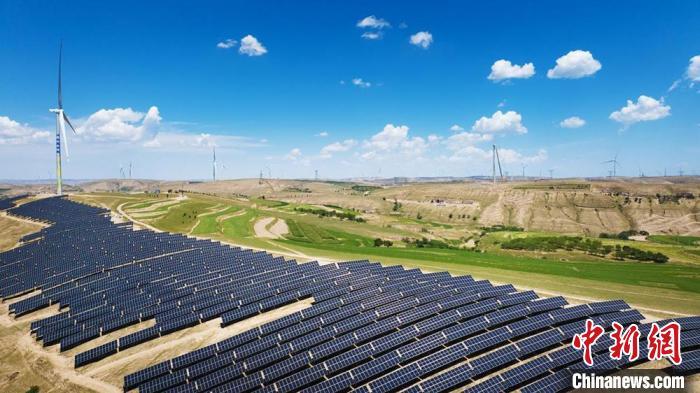 中新網(wǎng)蘭州11月26日電(高展 陳高鳳)在甘肅慶陽,有一座名為環(huán)縣的北方小城。境內(nèi)山脊層疊、溝壑連綿,山梁上,潔白的風(fēng)車與湛藍(lán)的天空交相輝映;山坡上,藍(lán)色光伏板與黃土地交織成獨(dú)特景致。這些美好“風(fēng)光”正源源不斷地轉(zhuǎn)化為清潔電能,也成為這座小城迎“風(fēng)”追“光”,撬動新能源經(jīng)濟(jì)的堅實(shí)底氣。