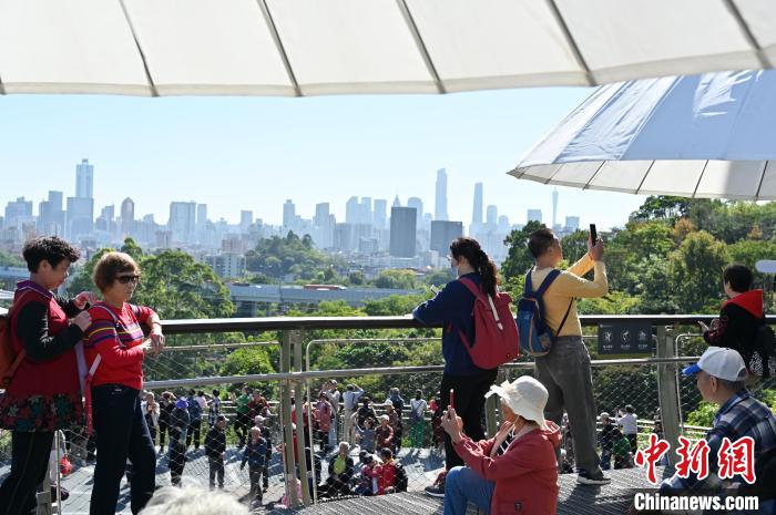 11月29日,廣東廣州,云蘿植物園正式開(kāi)園,游客在園區(qū)遠(yuǎn)眺廣州塔等城市景觀。中新社記者 陳楚紅 攝