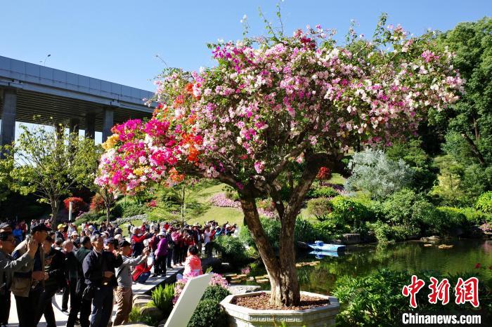 11月29日,廣東廣州,云蘿植物園正式開(kāi)園,簕杜鵑專類園吸引游客賞花拍照。中新社記者 陳楚紅 攝