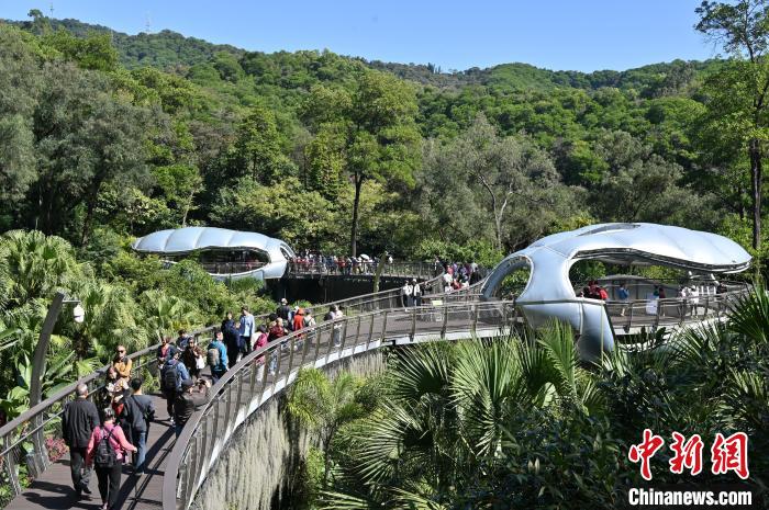 11月29日,廣東廣州,云蘿植物園正式開(kāi)園,游客漫步在空中園林棧道“木棉道”。中新社記者 陳楚紅 攝