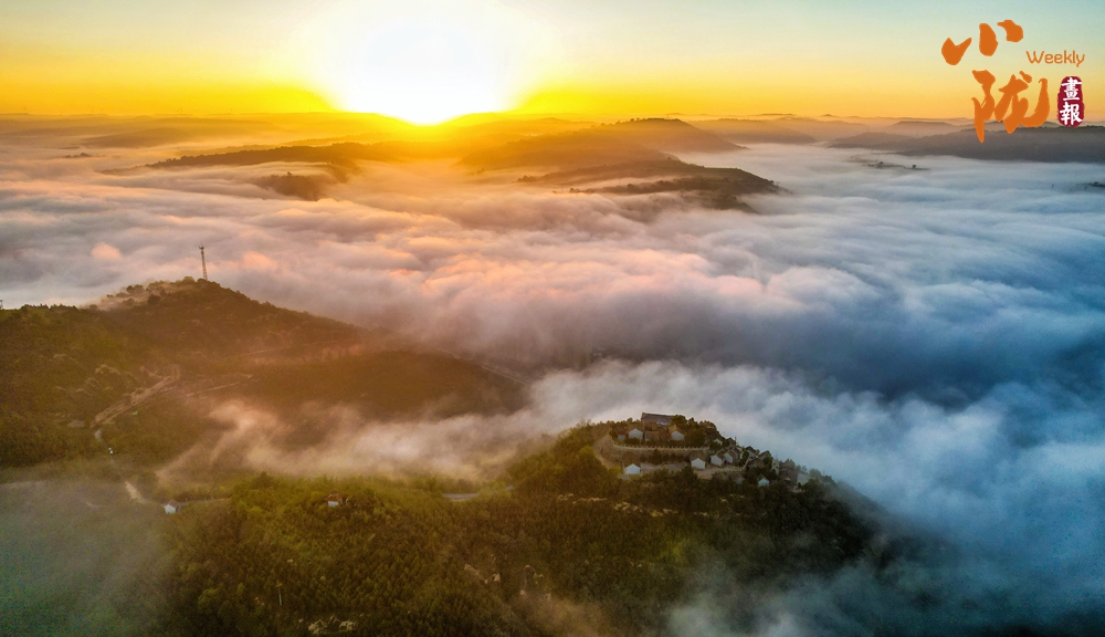 連綿起伏的山巒在云霧中若隱若現(xiàn),霧氣彌漫將溝峁山梁籠罩,形成一幅水墨風(fēng)光畫。